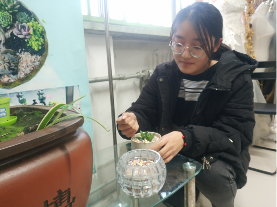 园艺种植、插花等让学生和生命对话,让学生体验艺术意境,在艺术技艺中励志,在艺术中感悟坚韧伟大、感受生命绽放的力量。