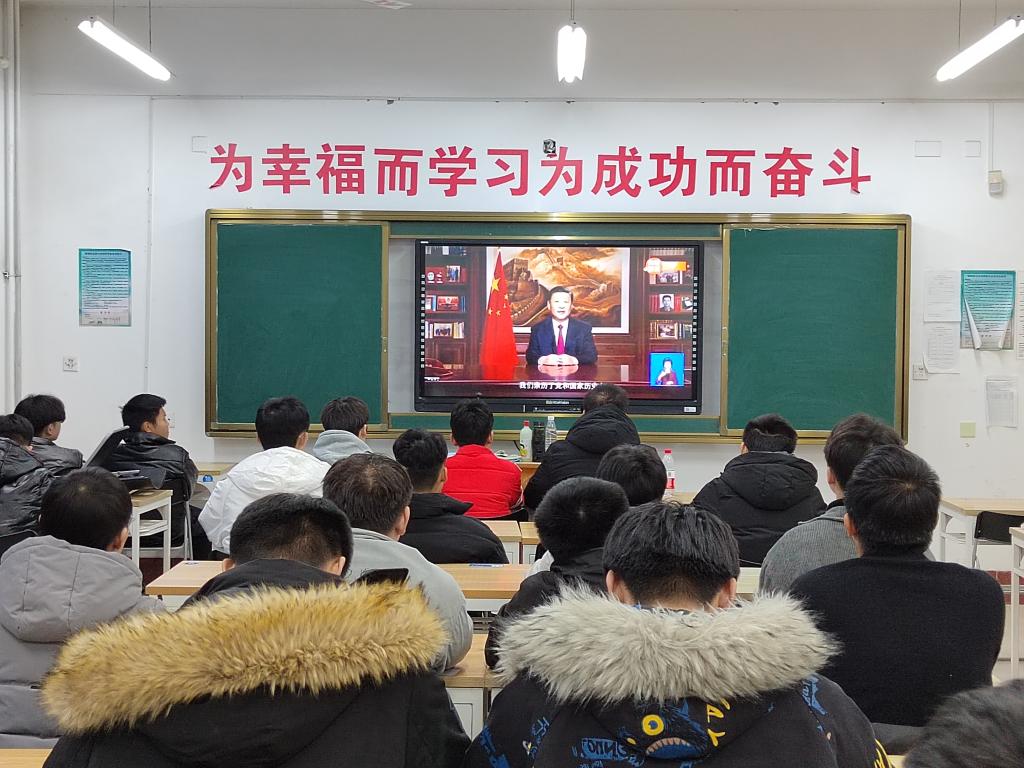 组织学生学习观看习近平主席新年贺词。2022年1月1日晚,机电工程系组织学生在教室集中观看习近平主席新年贺词视频,并开展学习讨论。同学们备受鼓舞,表示将更加紧密地团结在以习近平同志为核心的党中央周围,踔厉奋发,笃行不怠。