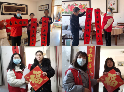 春联虽小,情意浓浓。服务队老师充分发挥专业优势,将书写的春联亲手送到老人手上,为他们送去真挚的问候和美好的祝福。