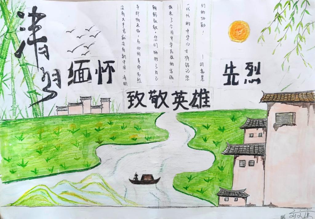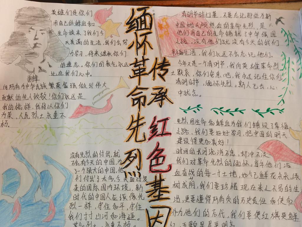 主题作品表心声。举办以“缅怀革命先烈,传承红色基因”为主题的手抄报作品征集活动。同学们以笔传情,以手画心,通过作品表达继承先烈遗志、奋发努力学习、争做时代新人的决心。