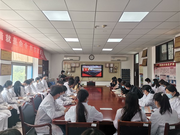 10日上午,护理系组织辅导员、青年学生代表在会议室统一观看了庆祝中国共产主义青年团成立100周年大会直播,深入学习领会了习近平总书记讲话精神。