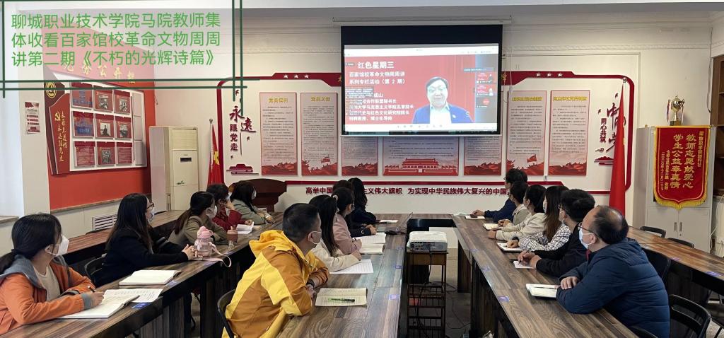 5月11日上午,马克思主义学院全体党员教师在马克思主义学院会议室收看了全国百家馆校革命文物周周讲第二期《不朽的光辉诗篇》。