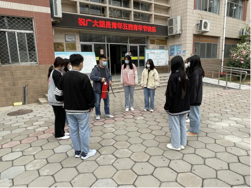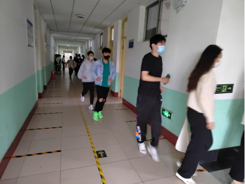 演练前,讲解逃生技巧和疏散要求,明确疏散的信号和路线。随着演练口令的下达,同学们在老师和学生干部的指引下,有序的按照疏散路线到相应区域集合完毕。整个疏散演练紧张、快速、有序,达到了演练的预期目的。随后任青文老师为大家讲解并演示了灭火器的正确使用方法,引导学生正确使用灭火器材。