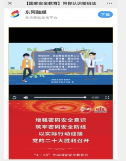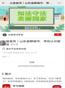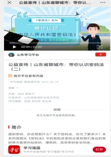 该系列小视频在“4.15”全民国家安全教育日被聊城市密码管理局采用并推广,在各县融媒体和公共交通媒介上转载播放。