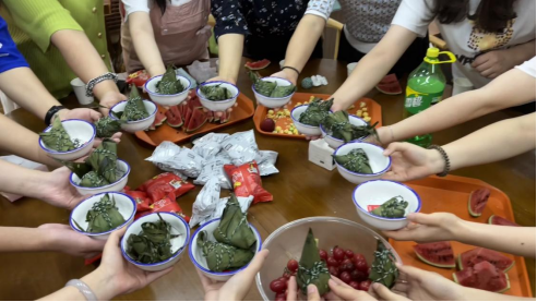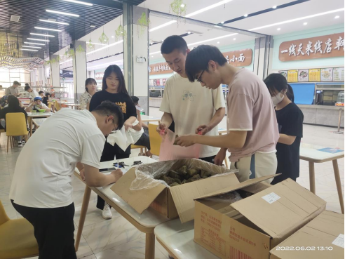 此外学校还暖心的为同学们准备了爱心粽子。师生志愿者将1300多个粽子搬到食堂,用了三个多小时将“爱心粽”分批煮熟,然后将粽子分发到每个班级,保证每位同学都吃到爱意满满的粽子。