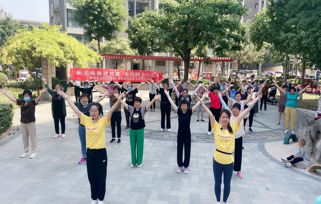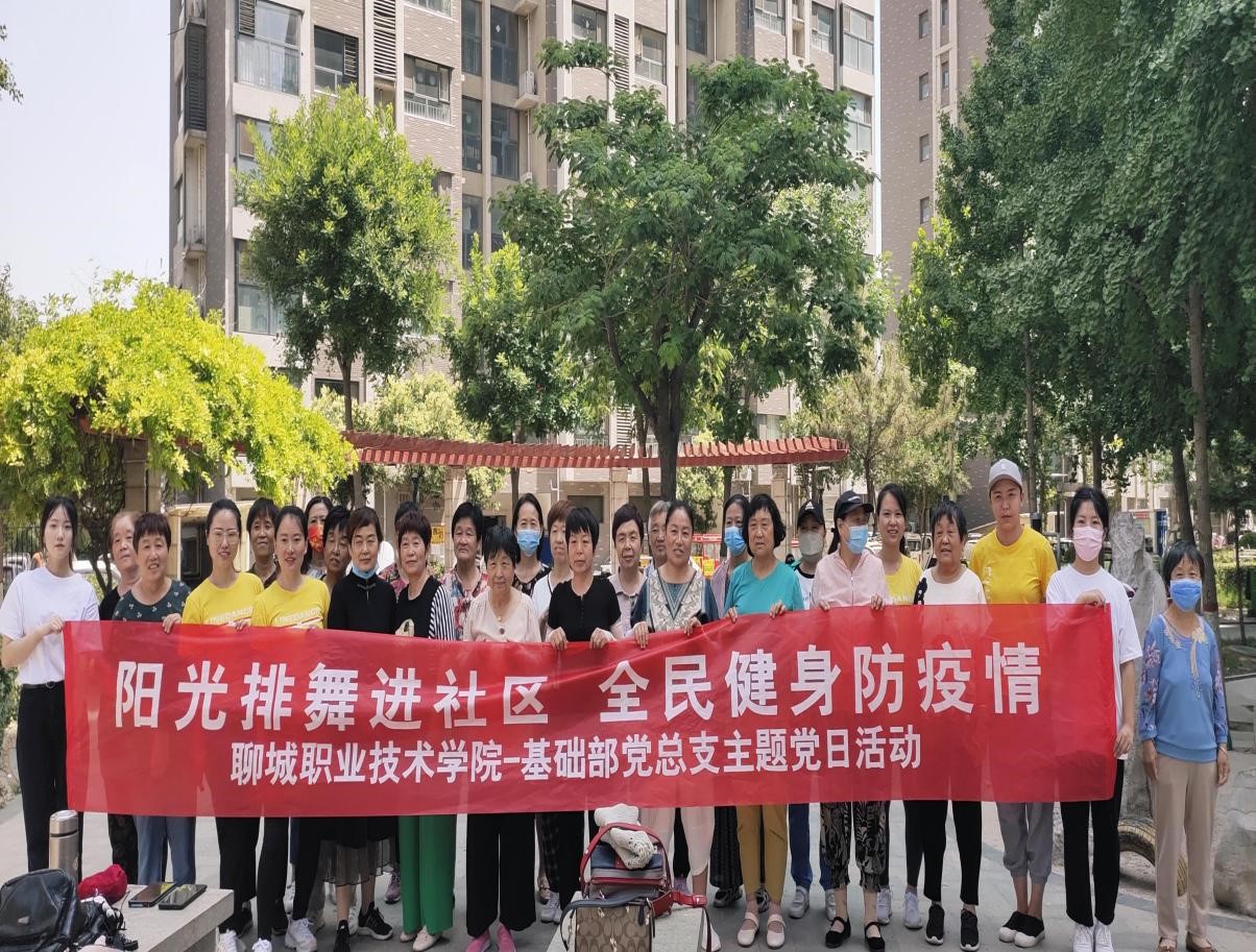 6月8日上午,基础部党总支组织党员教师走进阿尔卡迪亚社区,开展“阳光排舞进社区 全民健康防疫情”主题党日活动,为社区广场舞爱好者和居民进行专业化的志愿培训服务。
