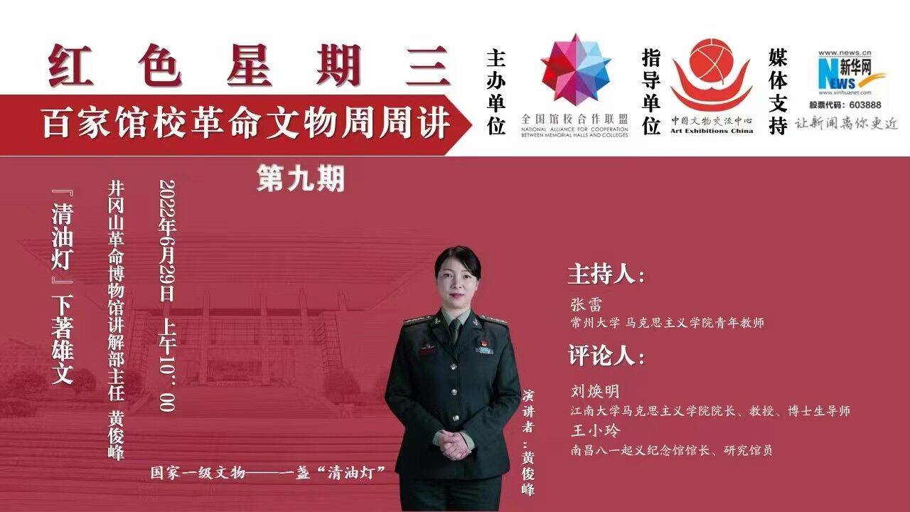 本期的主持人是常州大学青年教师张雷。主讲人由井冈山革命博物馆讲解部主任黄俊峰担任,她以《“清油灯”下著雄文》为题,围绕国家一级文物——一盏清油灯,向大家讲述了在当时严密的经济封锁、艰苦的革命条件下,毛泽东同志在井冈山八角楼探索中国革命道路的艰辛历程和在井冈山乃至全国树立马克思主义思想信念的的历程。