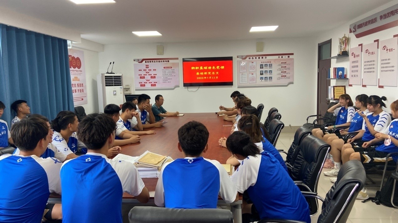 7月11日,基础部党总支为学院备赛7、8月份第二十四届CUBA全国总决赛的学院男女篮球团队开展励志党课活动。
