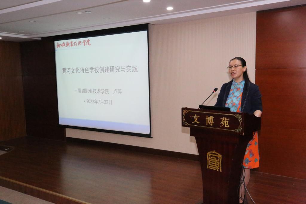 启动仪式结束后,卢萍以《黄河文化特色学校创建研究与实践》主题,以黄河流域的独特战略地位和融入服务黄河流域生态保护和高质量发展为背景,以黄河文化促进特色学校的建立为内容,做了主旨发言,阐述了黄河文化助力区域教育优质发展重要意义。
