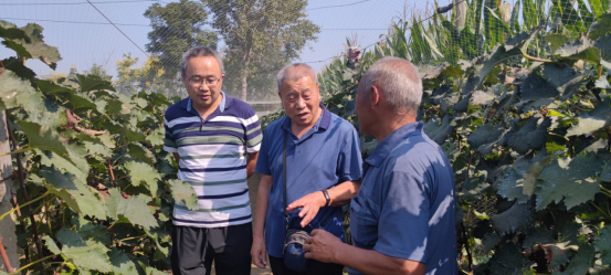 在胡里庄种植农户种植园区,服务团专家进入多个农户葡萄种植区,传授科学种植葡萄经验,对病虫害防治、农药减量、有机肥与化肥配施等进行耐心解答,并手把手进行示范。