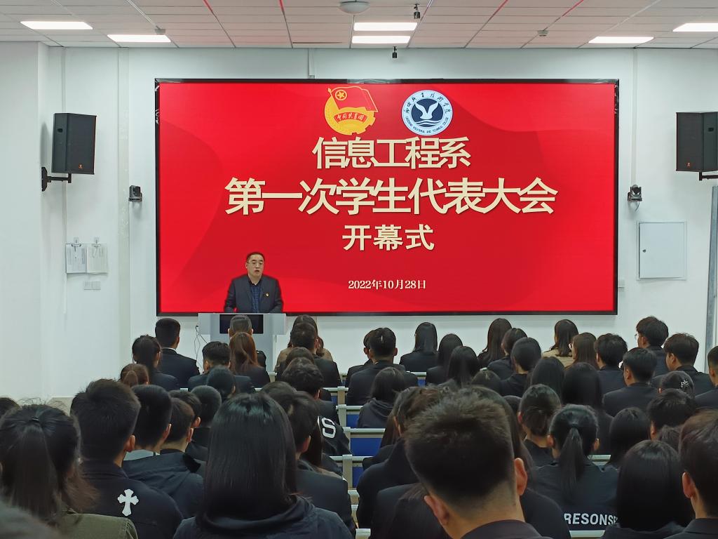 10月28日,信息工程系组织召开第一次学生代表大会。校团委书记任伟、校学生管理科科长李宇潇、系党总支副书记李晓平、系团总支副书记王哲、全体辅导员及学生代表参加了大会。
