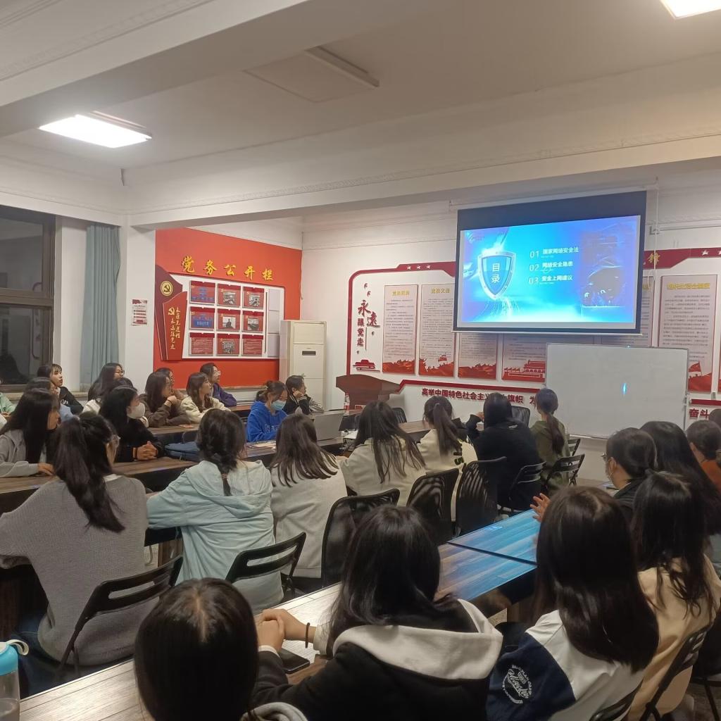 马克思主义学院党员教师带领学生对网络安全法、网络安全隐患以及安全上网建议等内容进行了深入细致地学习。共同探讨如何做一名网络安全宣传者、和谐校园的建设者、现代社会的维护者,为实现中华民族伟大复兴的中国梦贡献力量。