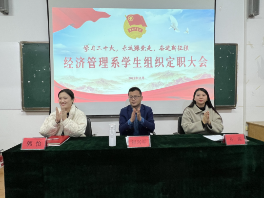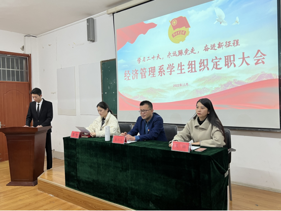 据悉,经济管理系学生组织包括学生会、大学生自律委员会、团务中心、青年志愿者协会、社团管理部。本次2022届学生组织定职述职大会是我系学生工作的一个新起点,在系党总支的坚强领导和团总支的悉心指导下,各学生组织会更加努力、围绕中心、服务大局,为经济管理系高质量发展贡献青春力量。