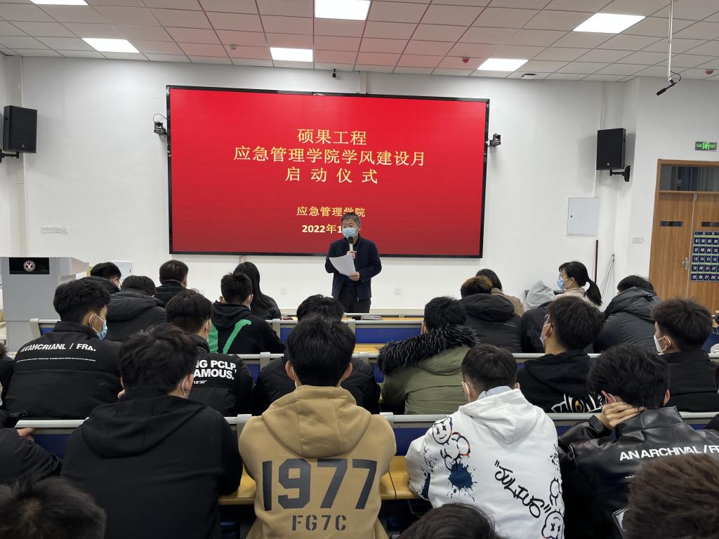 为进一步加强和改进学风建设,激发学生学习动力,促进学生全面发展,11月27日,应急管理学院在举行“硕果工程”学风建设月启动仪式。学院党总支副书记张延栋、团总支副书记陈晨,全体辅导员、班主任和学生代表参加活动。