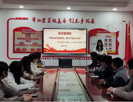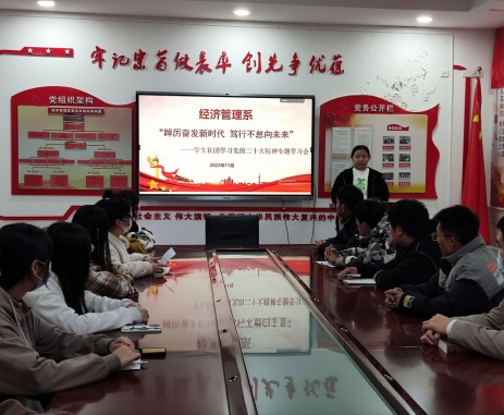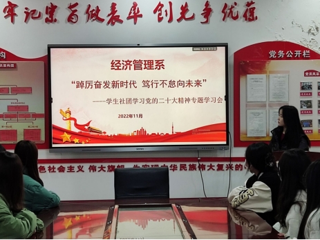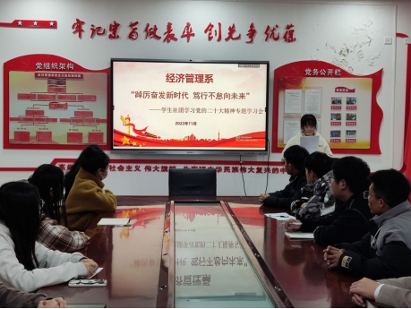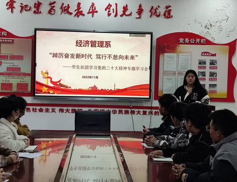 为深入学习贯彻党的二十大精神,加强社团团支部政治建设、组织建设、作风建设,11月28日,经济管理系社团管理部组织开展“踔厉奋发新时代 笃行不怠向未来”学生社团学习党的二十大精神专题活动。