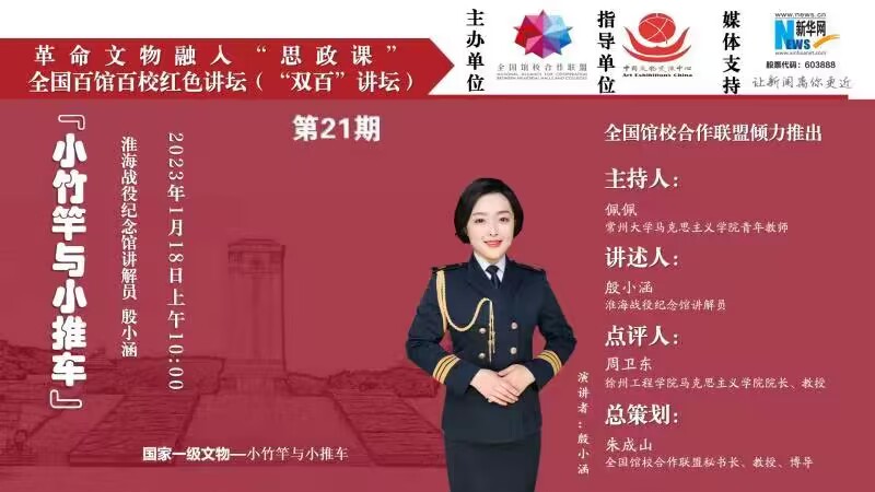 本期的主讲人由淮海战役纪念馆讲解员殷小涵担任,她围绕小竹竿与小推车这两件珍贵的革命文物,向大家讲述了淮海战役中以唐和恩和朱永兰为代表的广大人民群众支援战役的感人故事。