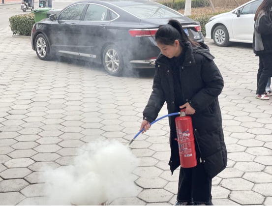 演练现场,随着警报的响起,学生在工作人员的指挥下,按照指定路线、规定动作,迅速有序地进行紧急疏散。随后,奚源详细示范灭火器使用方法,并指导学生进行灭火训练。