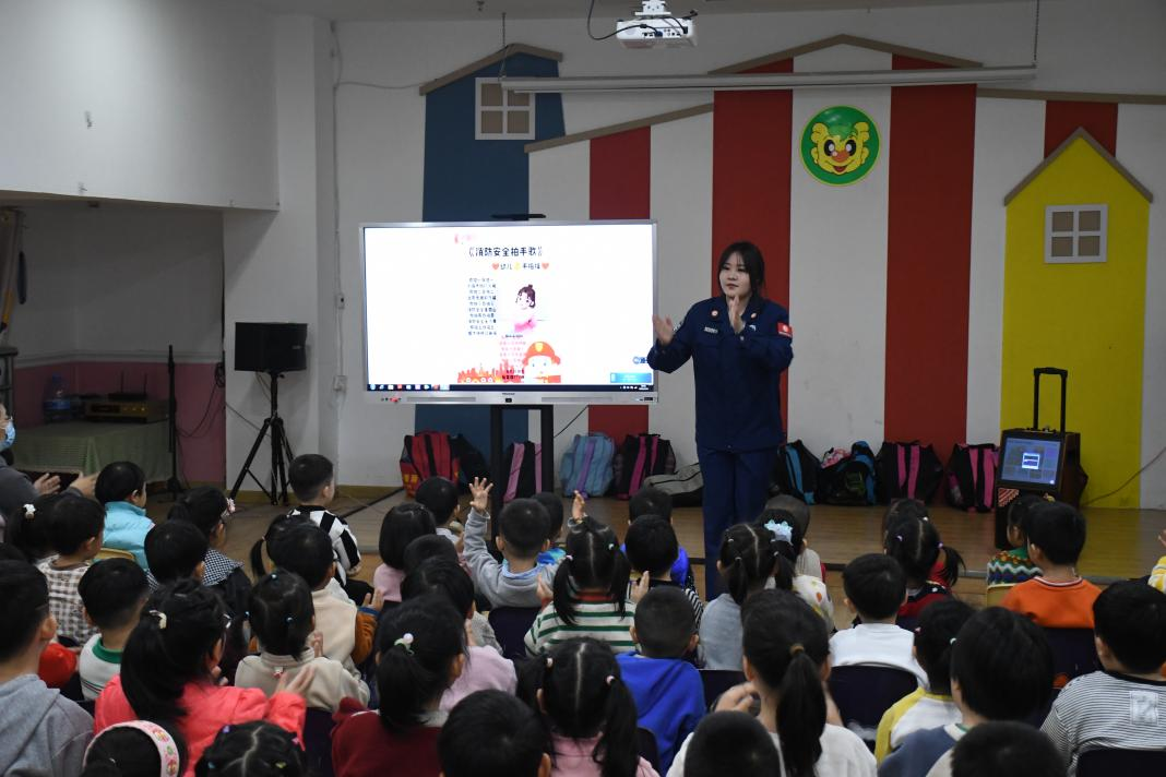志愿者们根据幼儿园孩子年龄偏小、理解能力有限和以及他们“好奇、好动、好学、好问”等特点,采用童稚幽默的语言,为小朋友们讲授如何防止火灾发生、发生火灾时应如何逃生、如何报警等消防安全常识,并与幼儿园小朋友一起开展消防安全拍手舞等活动。