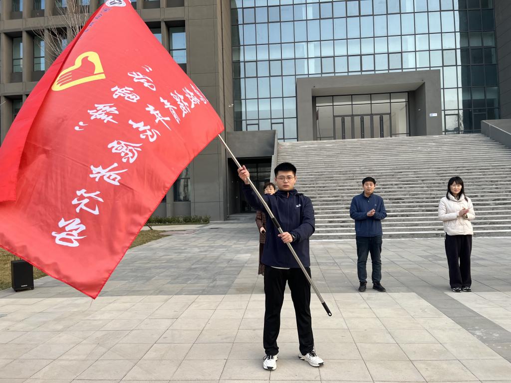 应急管理学院学生会执行主席史睿森作为学生代表发言。他表示,向雷锋学习,无私奉献,助人为乐不是空话,需要我们用实际行动来证明,雷锋精神,人人可学;奉献爱心,处处可为。随后,郭玉娟为“青春119”青年志愿服务队授“学雷锋”应急救援青年志愿者行动队旗。