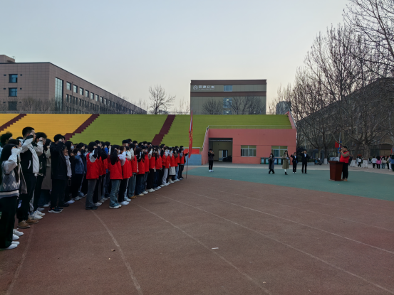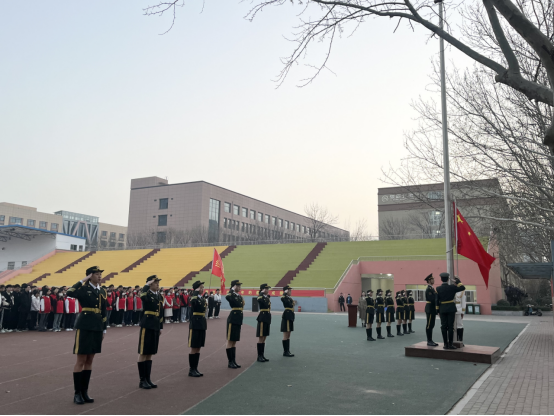 清晨6时30分,升旗仪式正式开始。在全体师生注目下,国旗护卫队迈着铿锵有力、整齐划一的步伐护送五星红旗入场。随着激动人心的《义勇军进行曲》,全体师生面向国旗,脱帽肃立,齐唱国歌,鲜艳的五星红旗冉冉升起。