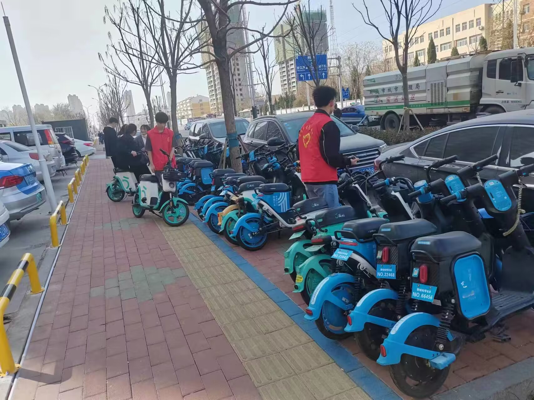 志愿者们分工明确,相互配合,清除绿化带及街道卫生死角垃圾;并对学校南门外停放混乱的共享单车进行有序摆放。