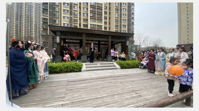 活动中,身着锦绣衣裳的青年学子向社区居民展示了华美的中国传统汉服,讲解了汉服一体化形制设计体现的中华文化“万物一体,同生共荣”的思想;汉舞《盛唐夜唱》中淡妆舞者的旋转轻柔、礼让有节与翩然和乐的意境感染围观居民赢得热烈掌声;师生带领社区儿童以古典吟诵方式共吟《游子吟》,在优美的旋律声中唤起了在场居民对母亲的感恩之情,增进居民对中华传统美德的深刻理解。
