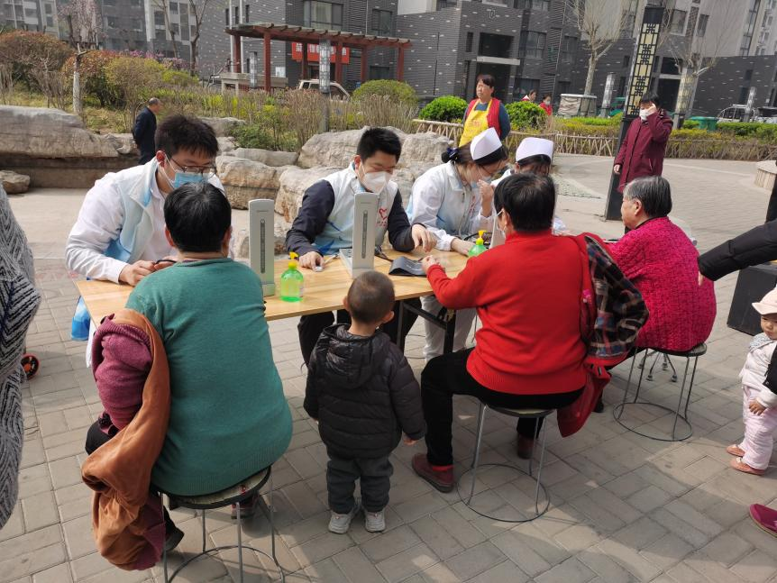 活动立足居民的身体健康,为居民提供了血压测量、肩颈按摩、急救宣讲、瑜伽展示等便民服务。方舟医疗队的志愿者们在专业老师的指导下为社区居民测量血压,询问老人的过往病史,用药情况,为老人以后居家护理提供方案。