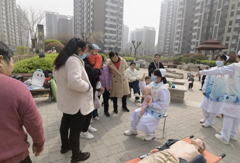 社区居民认真聆听志愿者讲解海姆立克法的应用要领,以前看急救视频以为是往后压,今天经过学习才知道是斜上挤压,多亏你们,以后遇到紧急情况我就不慌了。”一位学生家长说。