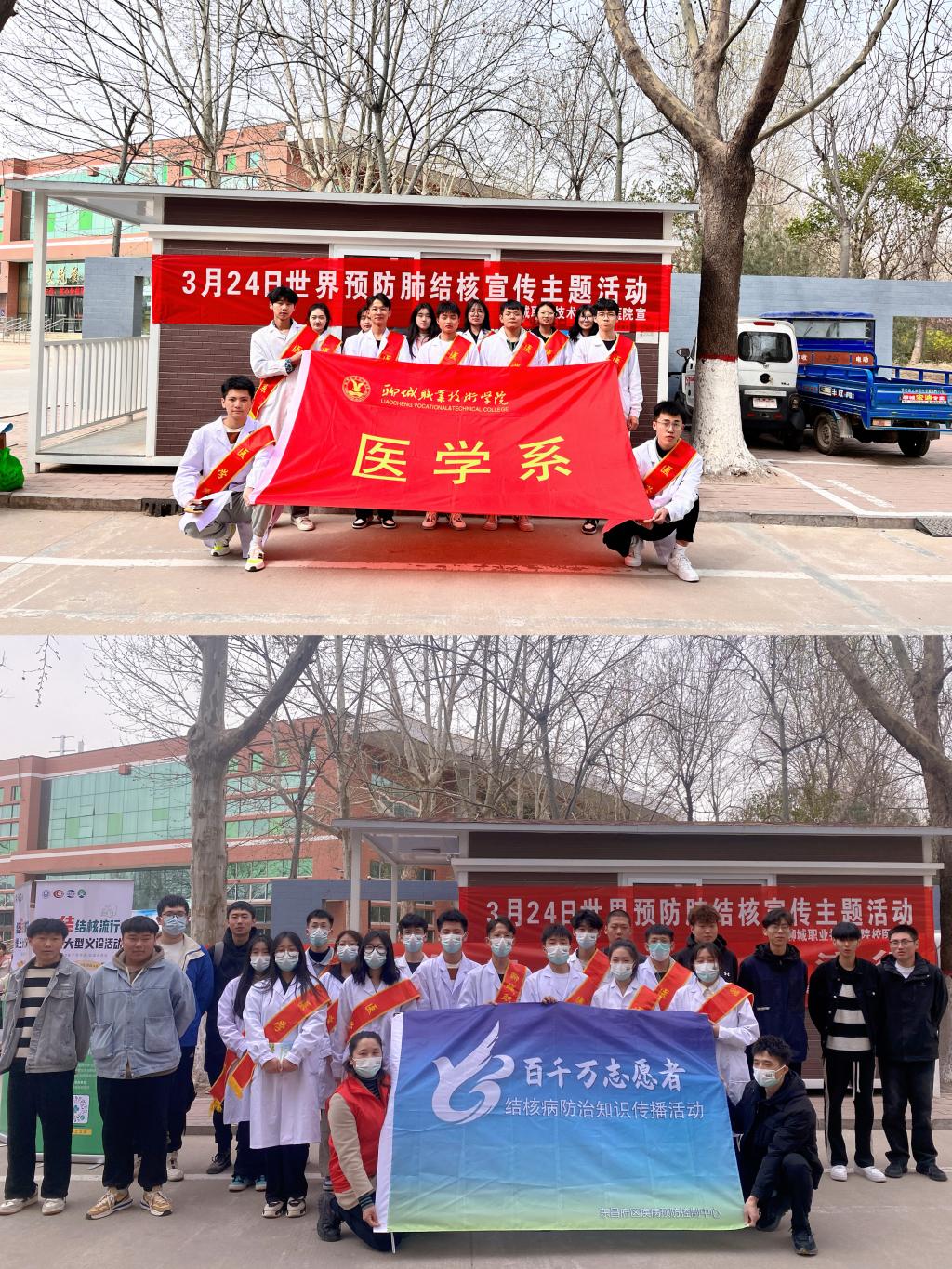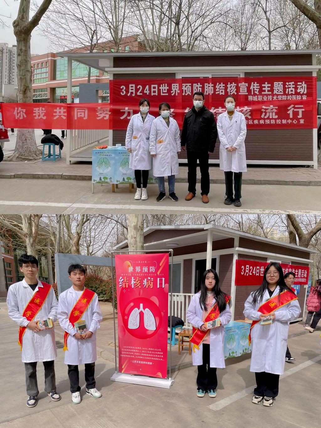 值第28个“世界防治结核病日”来临之际,3月24日,由聊城市东昌府区疾病预防控制中心,校团委、校医院、医学系主办的“你我共同努力 终结结核流行”结核病宣传活动在我校开展。