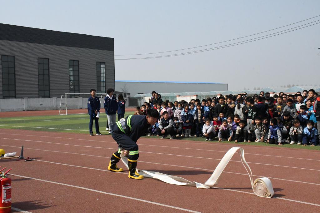 队员进行了消防水带铺设以及消防战斗服穿戴展示,讲解了灭火器的使用方法,并组织部分学生进行了灭火器的实际操作,让师生们更加直观地了解灭火流程。