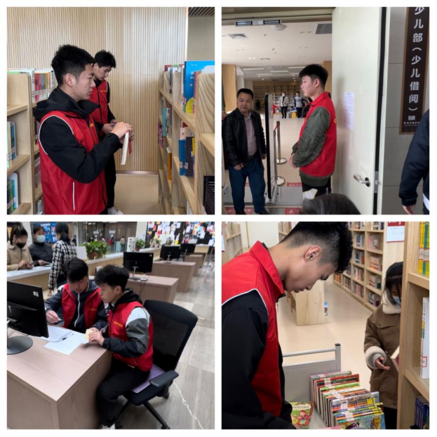 聊城市图书馆分为六大借阅区,志愿者们身穿红色马甲成为一道靓丽的风景线,他们协助到馆读者进行安检入馆,做好安全入馆“第一关”;帮助读者办理借阅证件,为想要寻找特定图书的读者指明该类书籍所在楼层;协助工作人员维护现场秩序,收集整理各类书刊杂志并按要求摆回原位置。青年志愿者们勤勤恳恳,严谨认真,维护了良好的借阅秩序,营造了舒适的阅读氛围。