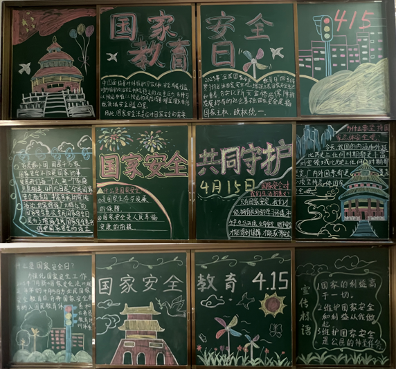 组织“国家安全教育日”板报评选活动。以“国家安全,人人有责”为主题绘画板报,让学生们通过参与安全日教育活动,展现青年大学生维护国家安全的决心。