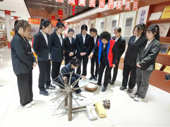 为进一步深挖《智能纳税实务》课程思政项目,4月22日,经济管理系教师带领《涉税工作室》社团社员们走进聊城棉文化手工博物馆,让学生亲自体验传统手工工艺,弘扬山东棉文化。