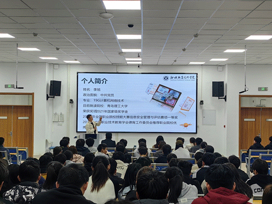 会议邀请2022届计算机网络技术专业毕业生李旭、2022届动漫制作技术专业毕业生徐佩奥分别交流发言。李旭现就读于青岛理工大学计算机科学与技术专业,他讲述在校期间备赛参赛的经历,鼓励同学们珍惜在校的美好时光,努力拼搏,稳扎稳打,在追求理想的路上勇往直前。徐佩奥现就职于山东新视觉数码科技有限公司,作为一名专业培训讲师,他结合自身实际,从树立目标、准备计划、主动执行三个方面来告诉同学们要珍惜在校的学习机会,提升自己的专业技能,为之后的求职就业奠定基础。