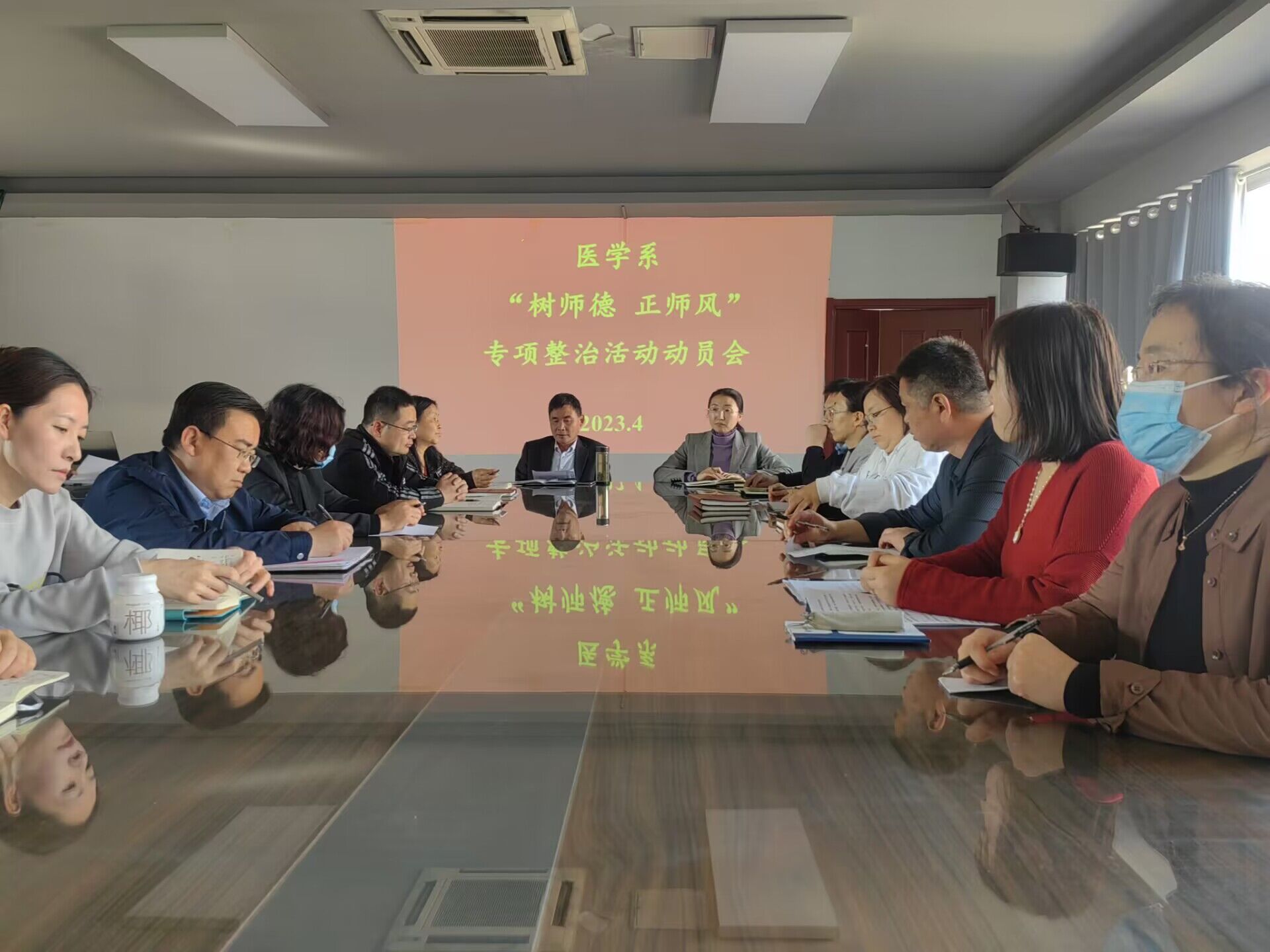 为进一步加强师德师风建设,规范教师职业行为,引导广大教师不忘初心,牢记使命,全面落实立德树人根本任务,4月27日,医学系开展师德师风专题学习,系主任范保兴、党总支副书记李娜及全体教职工参加。