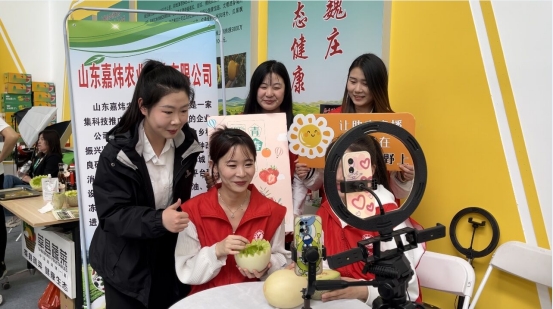 本届菜博会设置“智慧电商”“数字农业”等六大板块,参展企业350余家,展示品牌800多个、产品2000多种,活动伊始,实践团成员主动对接莘县香瓜、蔬菜等特色产业,和村镇企业负责人开展实地调研、交流互动,并在展位前通过短视频推广、直播营销等方式,为家乡产业代言。