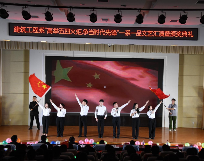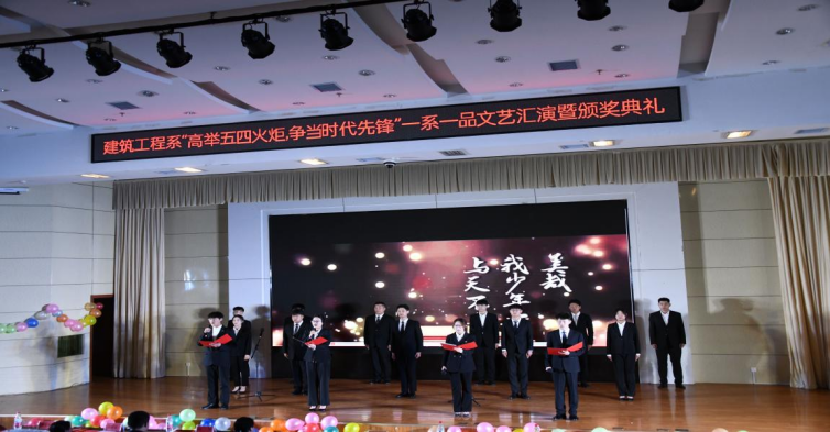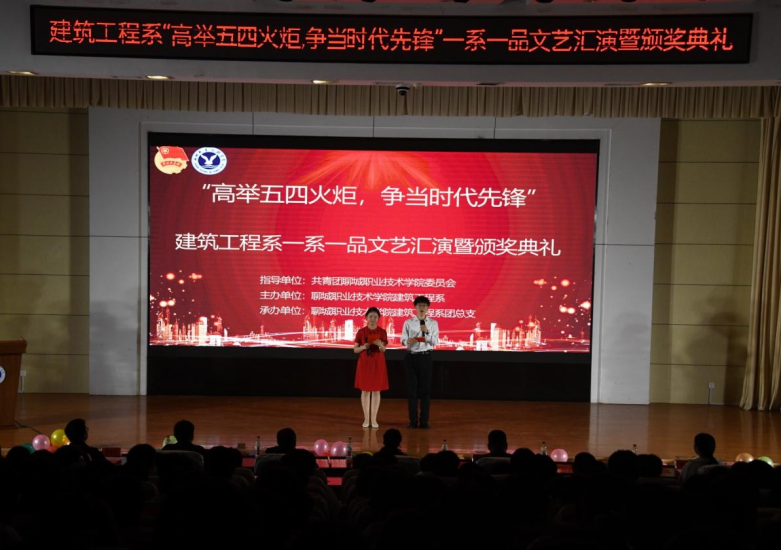 2023年是全面贯彻党的二十大精神的开局之年,为进一步弘扬五四精神,不断激励新时代大学生担当奉献、履职尽责的爱国情怀,弘扬“党有号召,团有行动”的光荣传统,值此“五四”青年节到来之际,5月4日,建筑工程系开展“高举五四火炬,争当时代先锋”一系一品文艺汇演暨颁奖典礼活动。建筑工程系党总支副书记邵琰、聊城职业技术学院团委书记任伟、团委副书记张博文出席,近400名师生代表一同观看演出。
