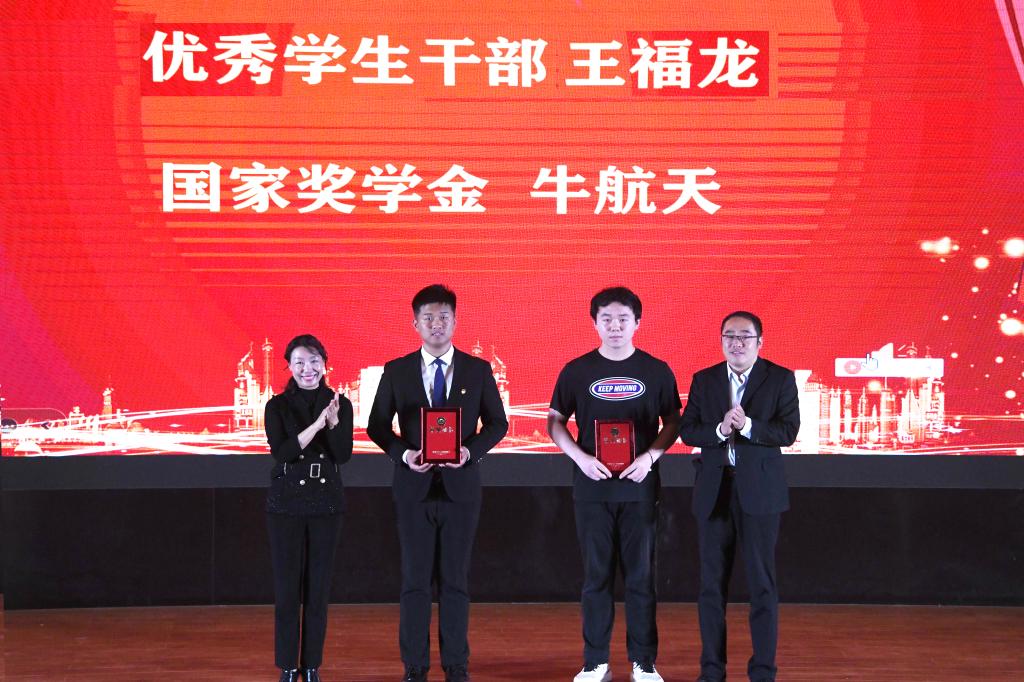 邵琰、任伟等领导老师们分别向2022年度获得省级优秀学生干部、省政府奖学金、国家奖学金、院级优秀学生干部及优秀学生、优秀团队代表等颁发荣誉证书。冯秀颖向受到表彰的先进集体和先进个人表示祝贺。他强调,当代中国青年与时代同向同行。希望同学们能够不忘初心,传承奋斗担当,在技能比拼中尽显青春风采,在社会实践中贡献智慧力量,在志愿活动中播撒热情,再创辉煌与佳绩。