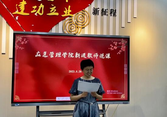 为落实立德树人根本任务,促进新进教师教学水平,提升课堂教学质量,8月26日,应急管理学院组织开展本学期新任课、开新课教师说课活动。应急管理学院院长郭玉娟,教学科副科长刘万瑞、全体教研室主任、校内专任教师和外聘教师参加活动。