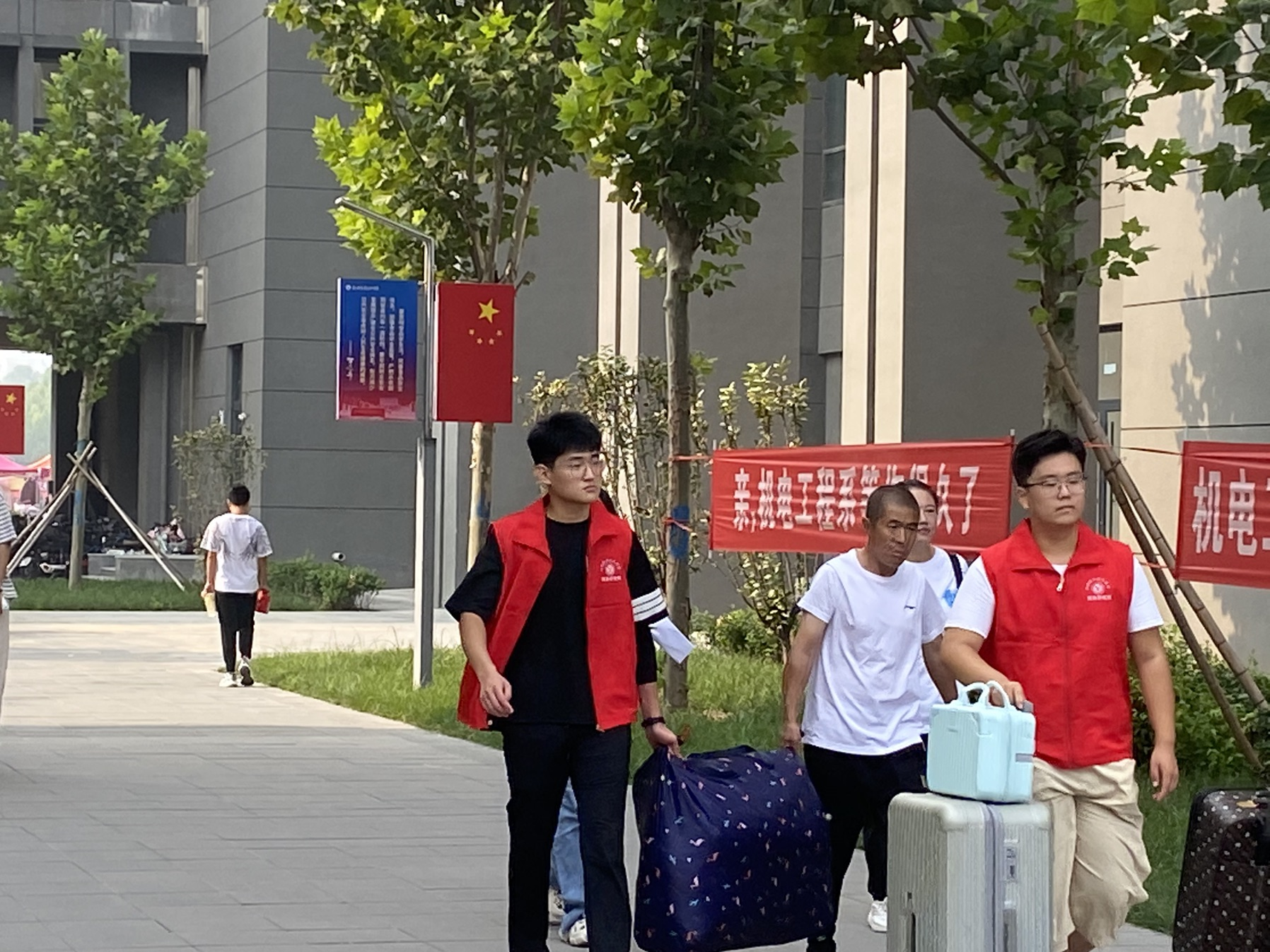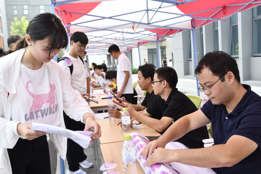 机电工程系提前招募了100多名学生志愿者,分别分布于校门口、报到处、宿舍楼等区域,井然有序开展志愿服务,帮助搬运行李,“一对一”全程引导新生完成报到事宜。设立家长休息区、爱心水站……一系列细致周到的服务凝“新”聚力,让初来乍到的学子们分外暖心。