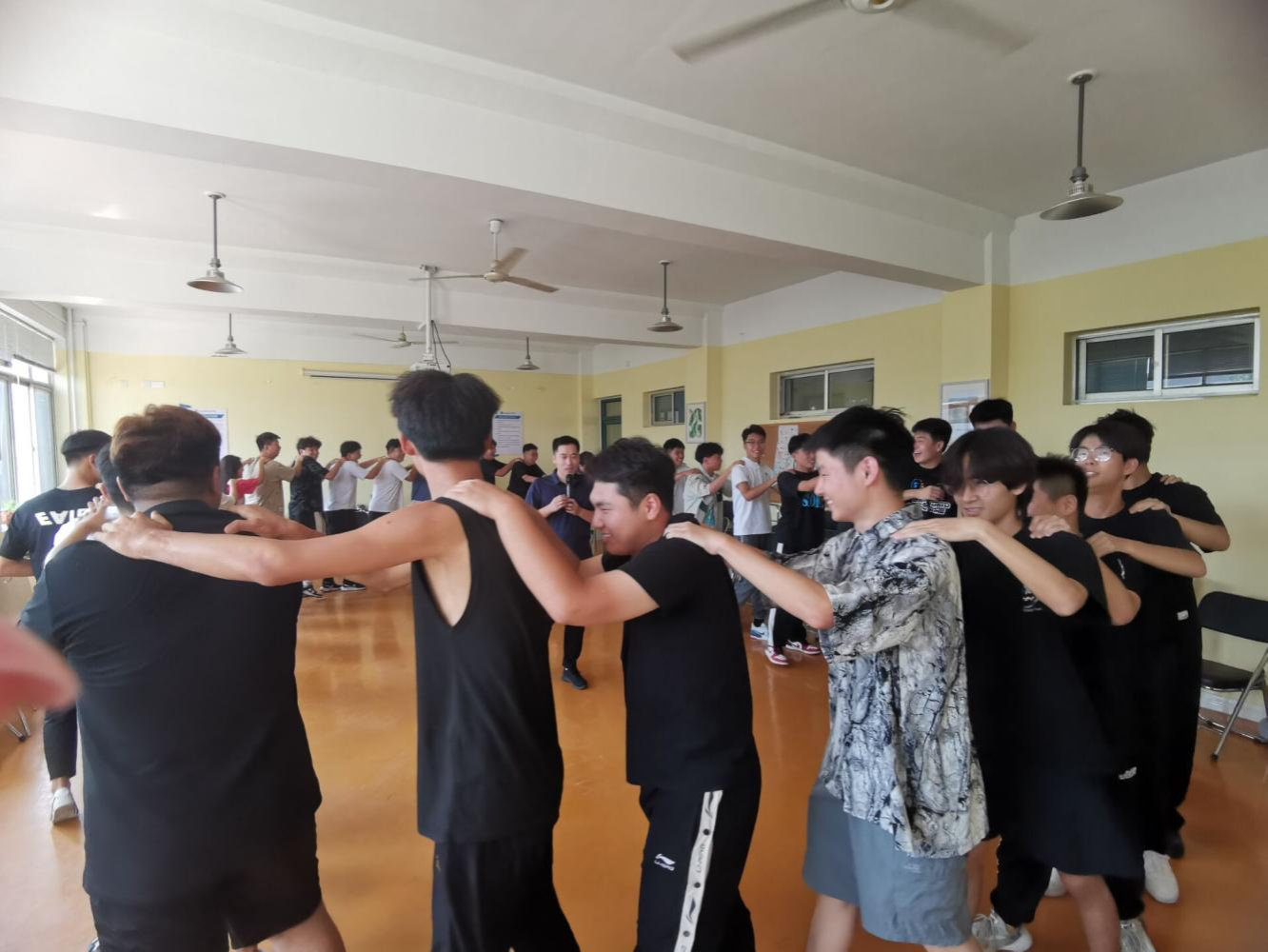 活动分为“轻柔体操”“马兰开花”“突围闯难关”“互诉衷肠”“机电有我更精彩”五个项目,同学们参与热情高涨,进一步加深了彼此的了解和认识,深刻体会团队协作的重要性,活动达到了预期效果。