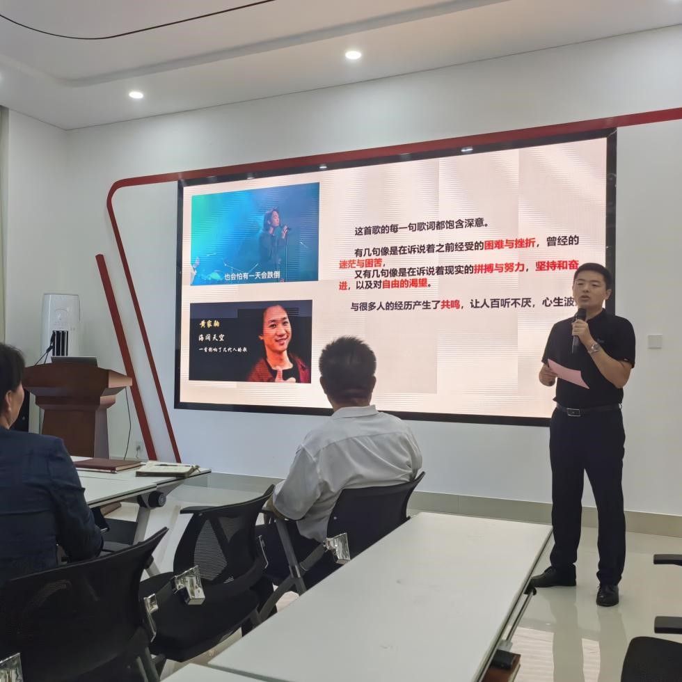 9月21日,马克思主义学院党员教师“会一手”文艺展演主题党日活动如期举行。党员教师高石磊介绍了《海阔天空》《年少的你啊》两首歌曲的创作背景与情感内涵,并现场进行演唱,通过歌曲让学生勇于面对挫折困难,做有理想、敢担当、能吃苦、肯奋斗的新时代好青年。