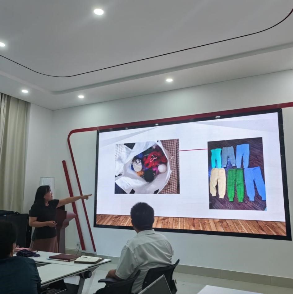 党员教师孙玉荣通过介绍手工针织品、表演打算盘等,展现了纯净朴实的家庭美德,让学生们认识到每个时代都有每个时代的独特印记,要珍惜时光、不负韶华。
