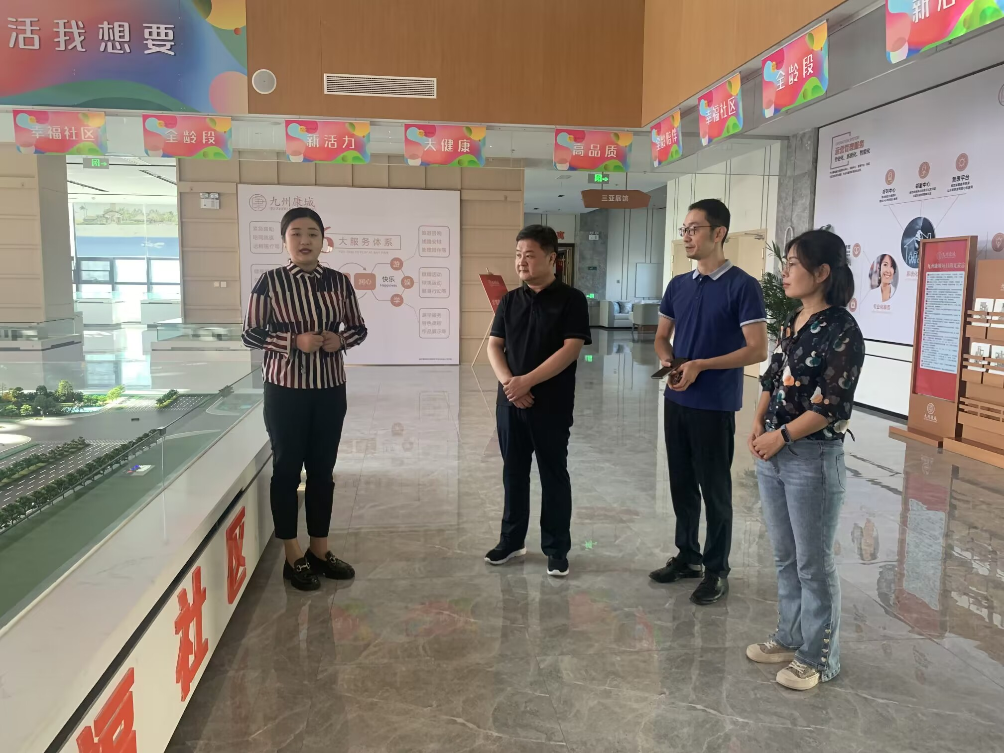 企业项目负责人详细介绍了九州康城项目打造“中高端全周期医养综合体”的建设理念和项目运营情况,考察人员参观了九州康城养护中心护理院、居家养老疗养区、康复训练大厅、智慧医养康服务中心等项目,并与入住老年人进行亲切交谈。