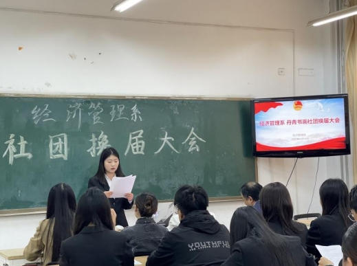 为更好地适应经济管理系教学活动的开展,进一步丰富学生校园生活,10月18日,经济管理系召开学生社团换届大会。团总支书记奚源、涉税工作室指导老师袁洪华、辅导员石茜、肖玉欣参加活动。换届大会由社团管理部指导老师张兴主持。