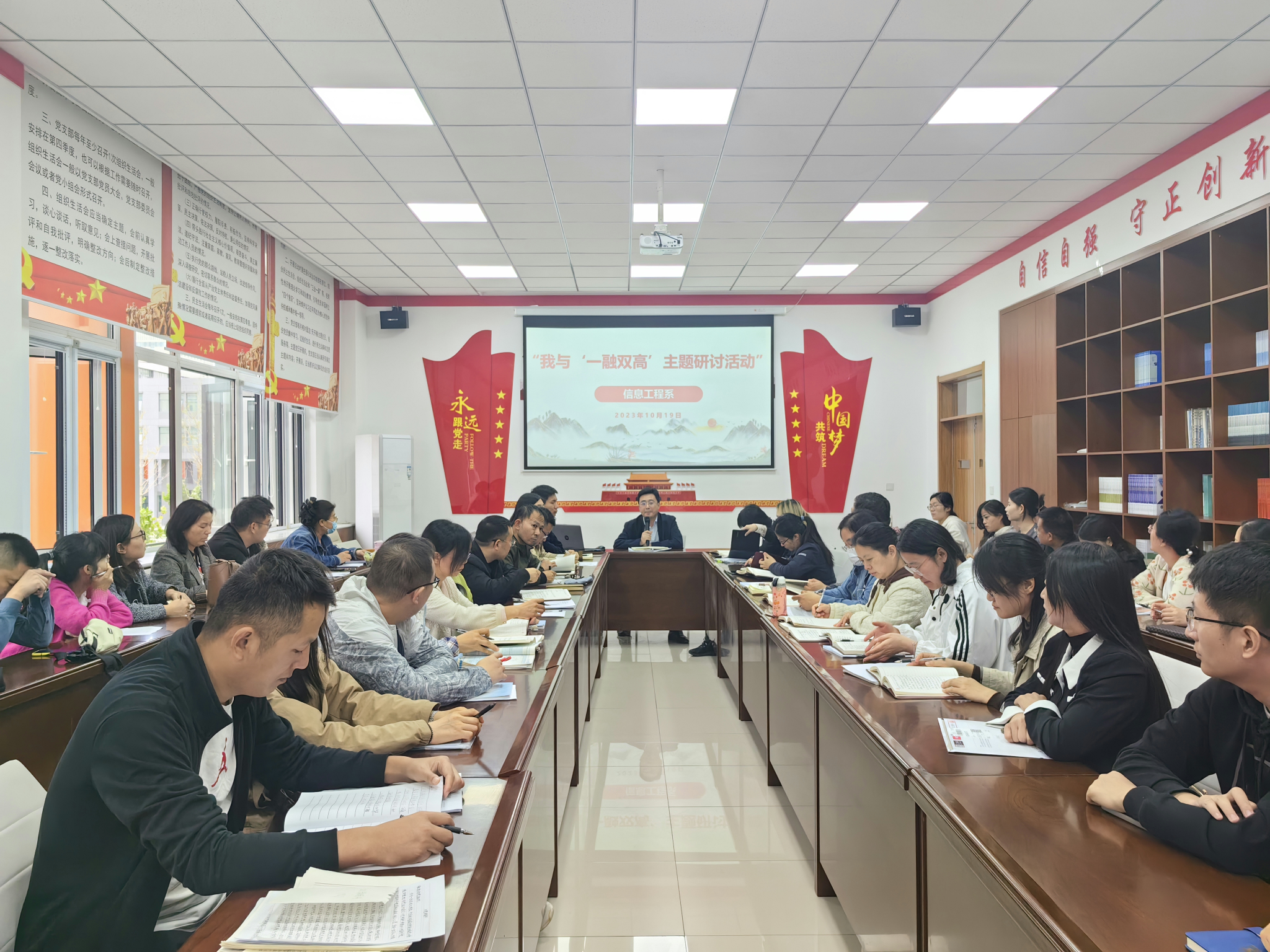 为全面贯彻党的二十大精神,推动学校事业高质量发展。10月19日,信息工程系召开“我与‘一融双高’”主题研讨活动。会议由信息工程系党总支书记、系主任岳宗辉主持。