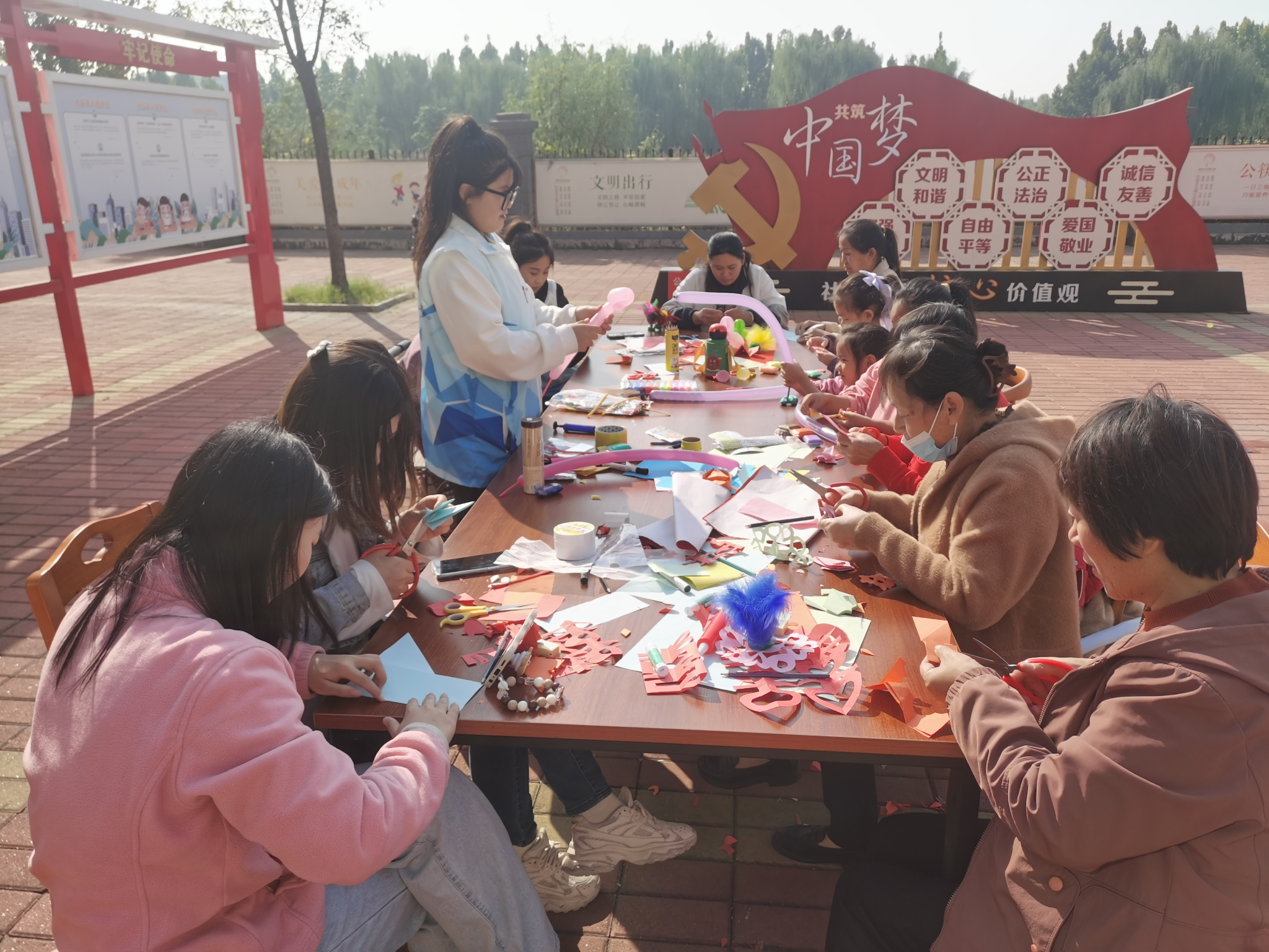 志愿者带来了剪纸工具,分发给现场的老人,耐心细致地讲解剪纸的技巧。不一会儿,一张张活灵活现的手工作品“诞生”了,看到完成的“囍”字、心心相印、窗花等精美作品,大家脸上都露出了开心的笑容。心灵手巧的志愿者为孩子们做了花朵造型的气球,小朋友抱在怀里爱不释手。志愿者们还带领老人踢毽子,大家你踢给我,我踢给你,整个现场场变成了欢乐的海洋。