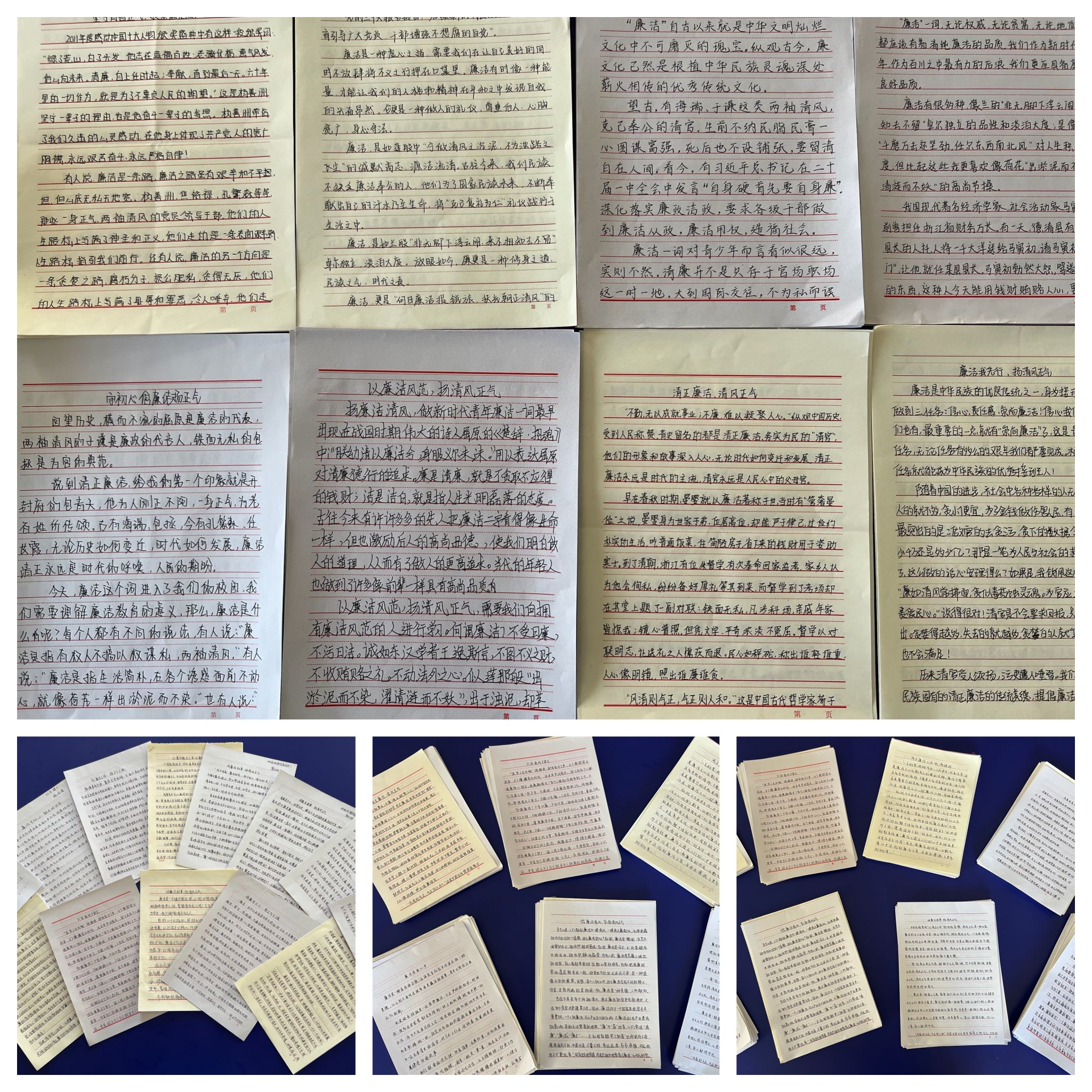 书写清廉故事,弘扬廉洁文化。同学们以作品或故事为载体,或讲述身边老革命、劳模、教师等先进人物的廉洁故事,或讲述百年党史期间发生的体现廉洁的红色故事,或讲述亲身经历的廉洁事例等。同学们在活动后纷纷表示,通过征文的形式书写廉洁故事,让我们对先进典型人物有了更加深刻的认识,会更加坚守清正廉洁的价值观,自觉带头树立良好榜样,弘扬清风正气。
