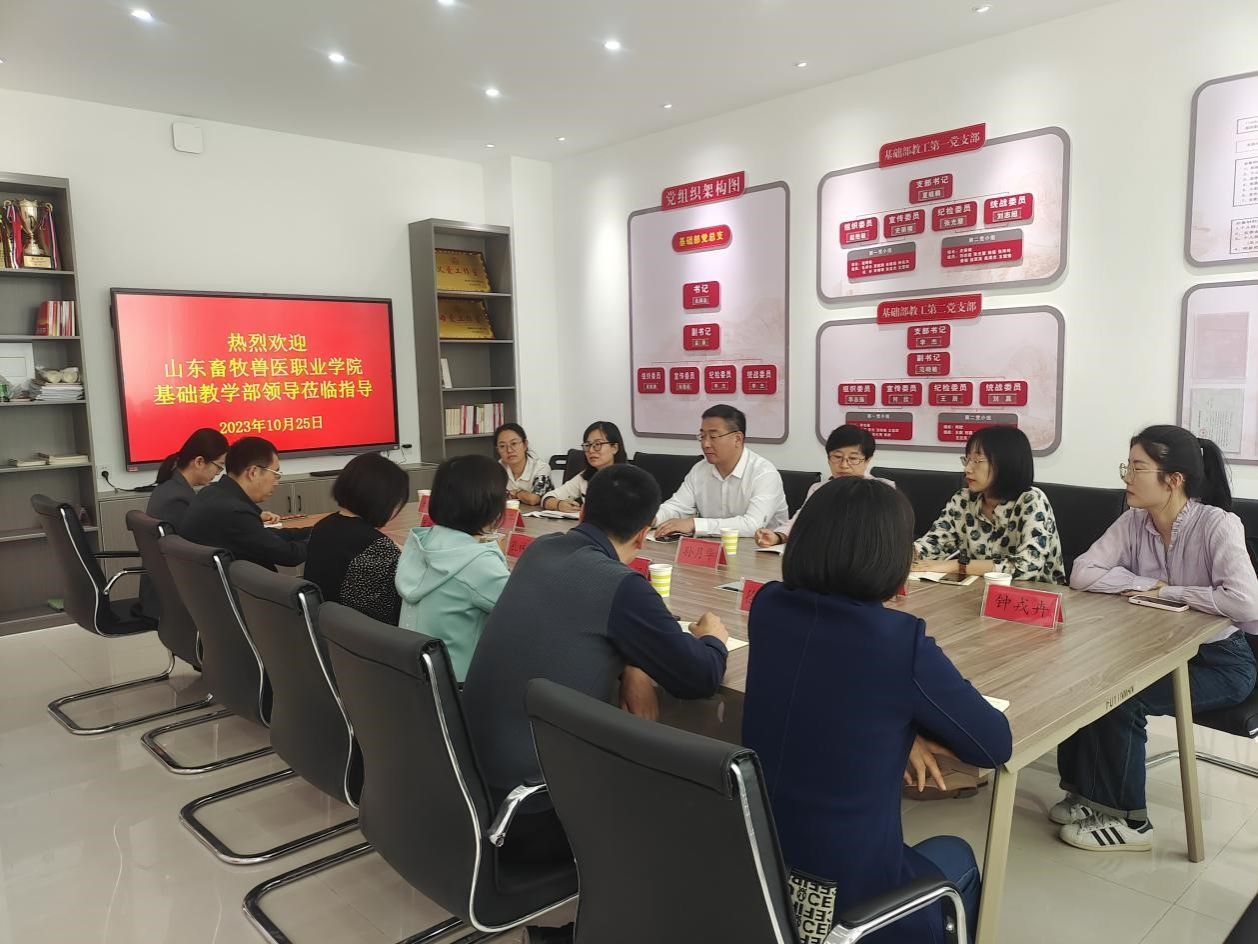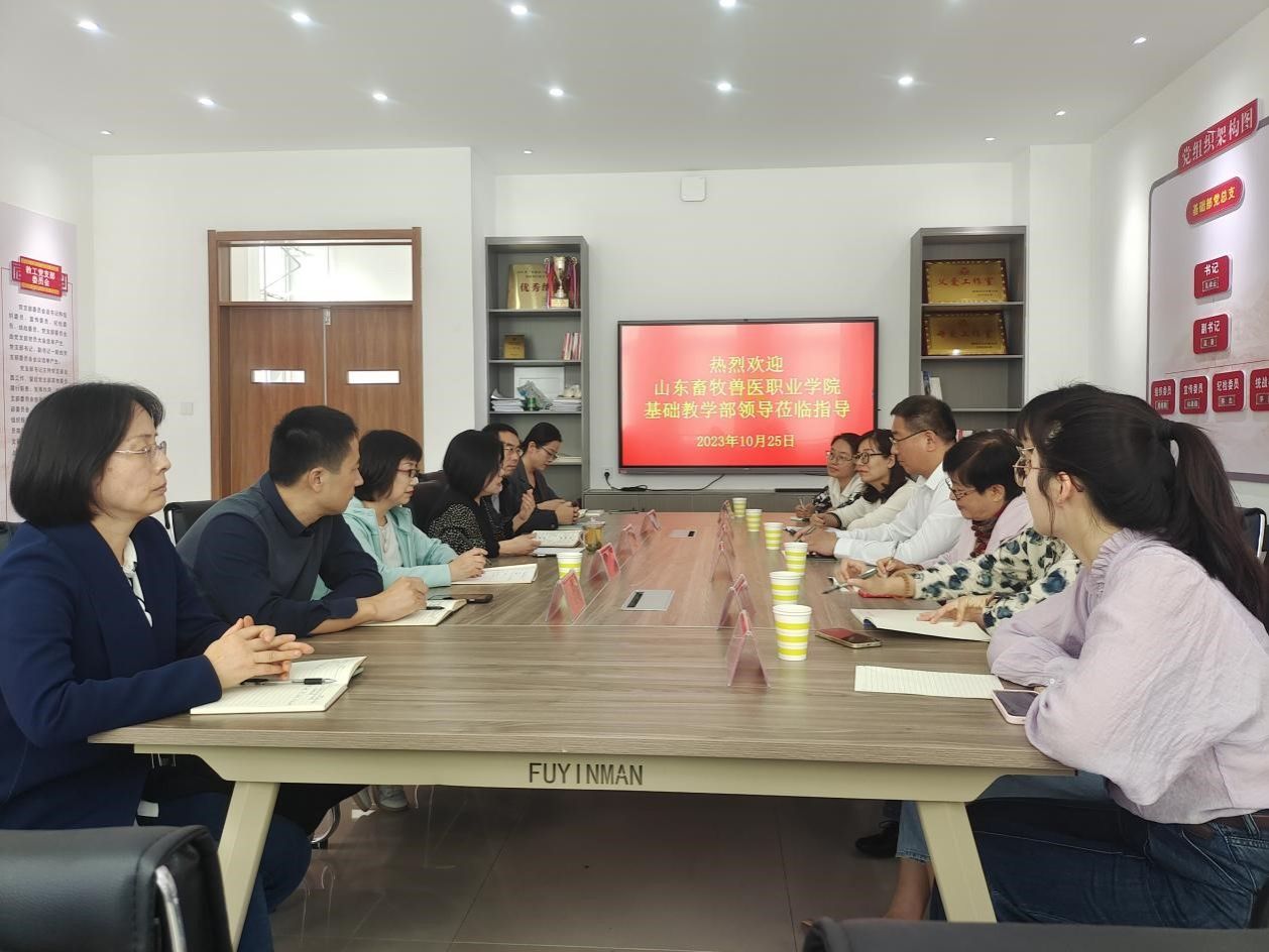 10月25日,山东畜牧兽医职业学院基础教学部党支部书记李治明、语文教研室教授孙玉华、语文教研室主任安芬、教学秘书钟戎卉和教师洪晓萌、郑宏宇一行来基础部考察交流。基础部主任孔祥云主持考察座谈会,学校语委办主任李娟、基础部相关负责人和教研室主任等参加活动。