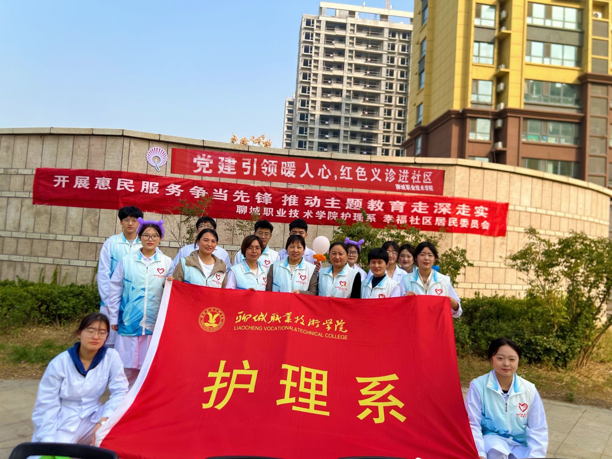 为弘扬中华民族传统美德,推动主题教育走深走实,近日,护理系党总支副书记王凯颖带领党员老师、学生志愿者深入幸福社区开展“党建引领暖人心,红色义诊进社区”志愿服务活动。